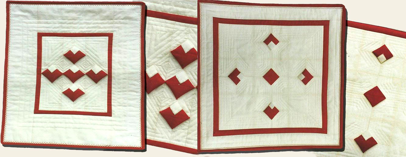 center fabric knots, puffed squares, triangles, inner corner accents and